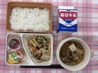 今日の給食のポークカレーは、小麦粉とバターの代わりに米粉が使われています。小麦粉や牛乳のアレルギーを持つ人も安心して食べることができます。また、もやしのソテーに入っているニラは今が旬の野菜です。美味しいニラを見分けるポイントは、「緑色が濃く鮮やかなもの」「しなっていないもの」「折れた葉が混ざっていないもの」です。皆さんも買う時はポイントを意識して選んでみましょう。