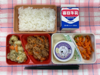 今日の給食は、アジフライ、もやしのソテー、「栄養満点、食べごたえのあるひじきごはん」の具、なめこのみそ汁です。「栄養満点、食べごたえのあるひじきごはん」の具は、昨年度に行われた枚方市学校給食コンテストの入賞作品です。えんどう豆、大豆、薄揚げ、ごま、ひじき、にんじん、ちりめんじゃこ、干し椎茸、じゃがいもが入っていて「まごわやさしい」の全ての食材が揃った、栄養がたくさんとれるご飯です。給食では、混ぜごはんの具にアレンジしてします。ご飯に混ぜて食べてください。
