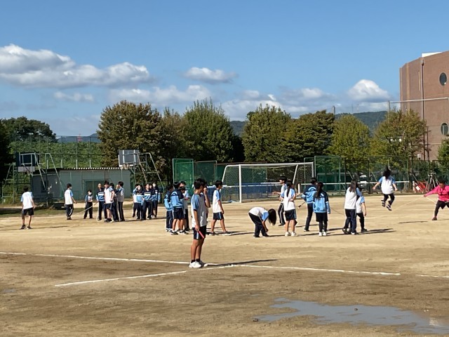 お昼休みには、おそらく学校の約半分近いくらいの生徒が自主的にグラウンドに集まり、体育祭に向けた練習をしていました。予想以上の人数に少し驚きはありましたが、学年の垣根を超えて、同じ団で一緒に練習している様子も見られました。