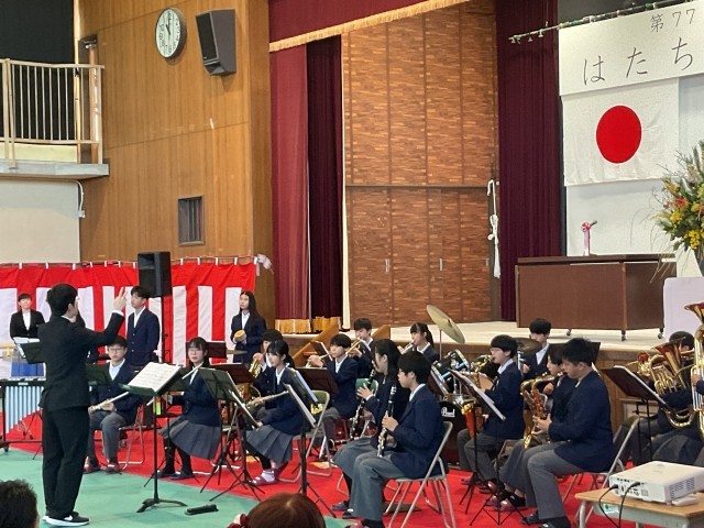 1月12日(祝)に第77回枚方市「はたちのつどい」が主に枚方市立中学校を会場として実施されました。本校でも本校を卒業された多くのみなさんが参加されました。そのオープニングでは、本校吹奏楽部が演奏し、はたちの門出に華を添えてくれました。