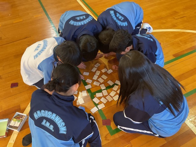 先日行われた、2年生の百人一首大会の様子を紹介します。日本列島に寒波が押し寄せている中でしたが、本校の体育館は1月とは思えないほどの熱気に包まれていました。