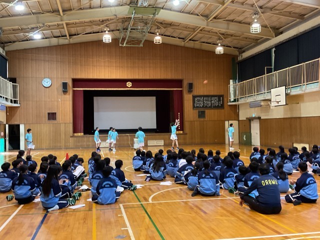 生徒会本部から専門委員会についてお話があり、各クラブから部活動紹介が行われました。1年生の皆さんは先輩たちのお話や活動内容を真剣に聞いてくれていました。