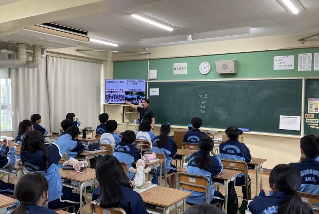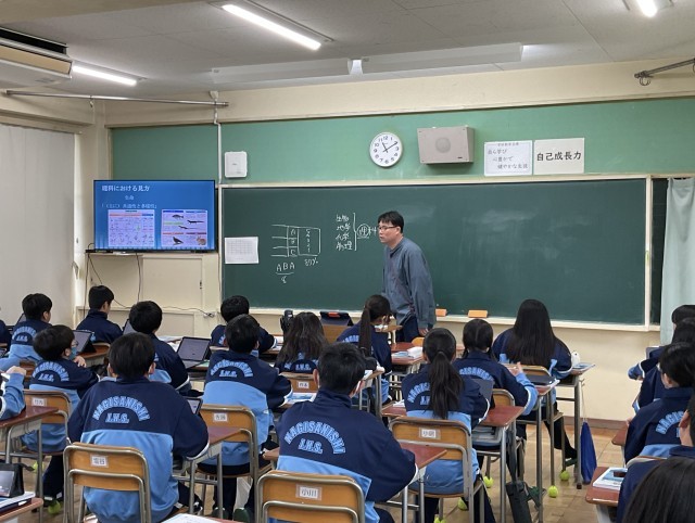 英語、理科についてはガイダンスのお話で、社会については大阪府と新潟県の中学校の様子や中学生の学校生活(例えば、冬の保健体育はどんなことをしているか、など)についての内容で、生徒からはいろいろな回答が返っていました。