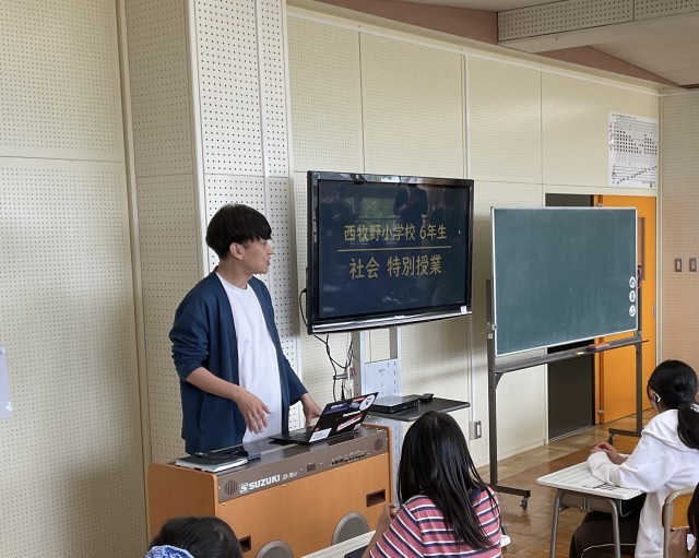 本日の14時20分から西牧野小学校において行われました、札幌国際大学 准教授 安井先生による、小学6年生への社会科の師範授業を見に行きました。
