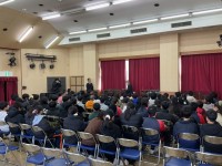 2年生が6時間めの総合的な学習の時間に市立ひらかた病院の方々をお招きして、がん...