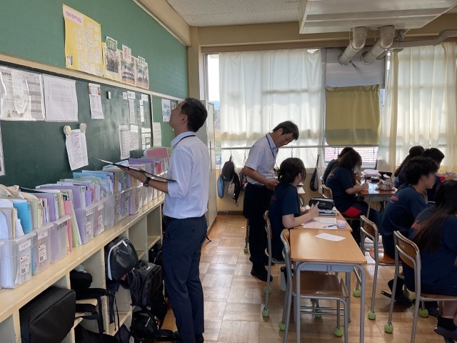 昨日、市教育委員会からの学校訪問があり、すべての授業の様子を参観し、授業を通して生徒たちの様子や教室などの環境を見ていただきました。