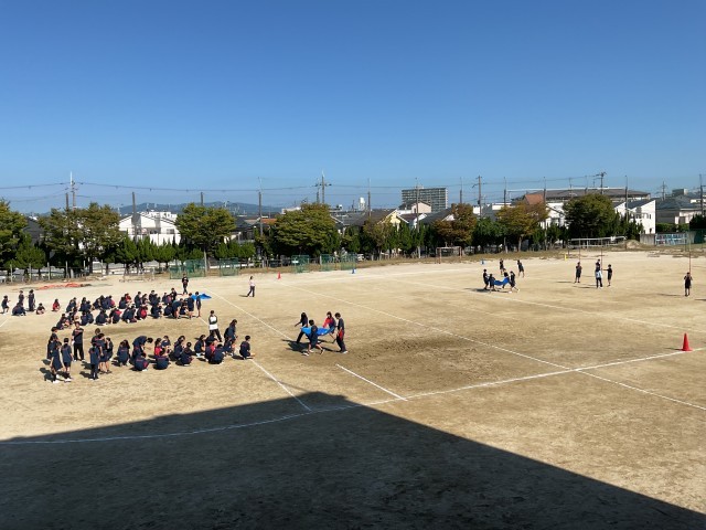 市教委の学校訪問と重なり、間近で観ることはできませんでしたが、時折聞こえてくる歓声に生徒たちが頑張っている様子が伺えました。