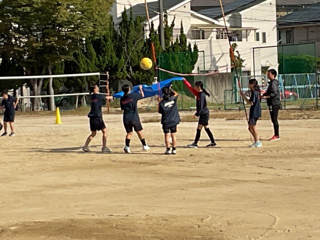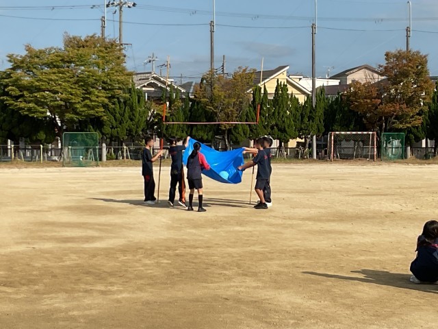 前回の学年種目の練習より、4人で息を合わせてボールを上に飛ばすことができていました。