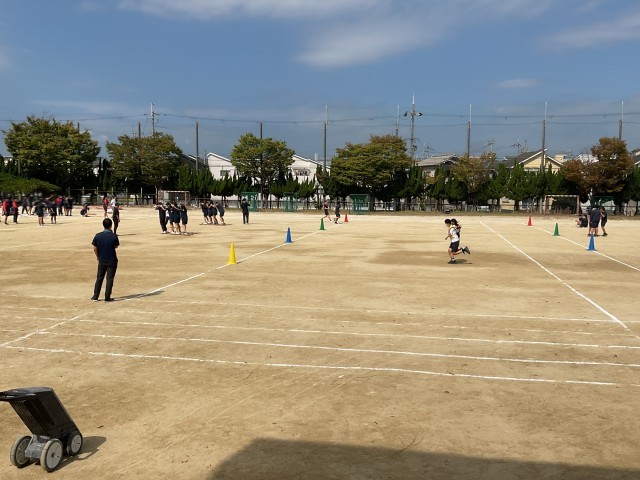 3時間め、学年練習の最後は3年生です。練習は学年種目を中心に行われていました。様々な種目を組み合わせ、クラス全員でたすきを繋いでゴールをめざします。