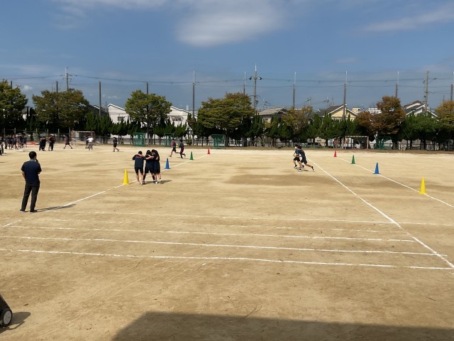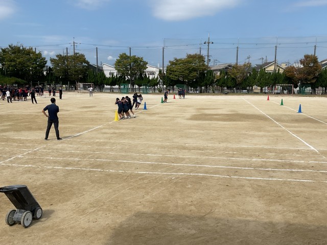 生徒は最後の体育祭の学年種目を楽しみながらも真剣に取り組んでいました。焦る気持ちを冷静に、一緒に競技する生徒と声や息を合わせ、体育祭当日は思い切り頑張ってほしいと思います。