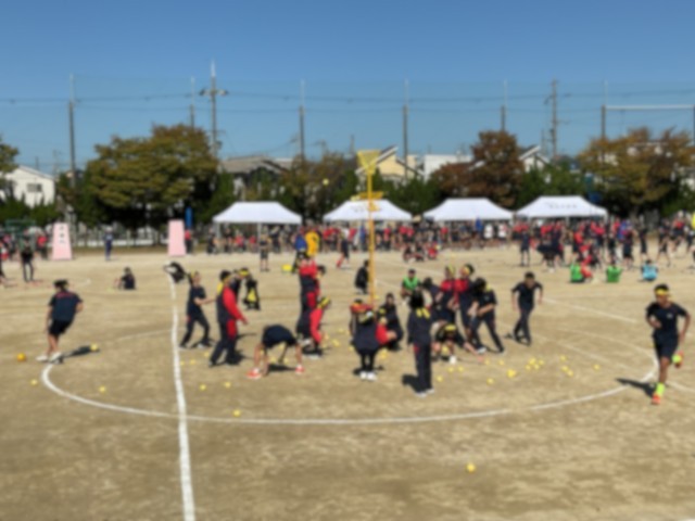 30秒間のうちに高さの違うカゴにより多くの玉を入れ競いました。