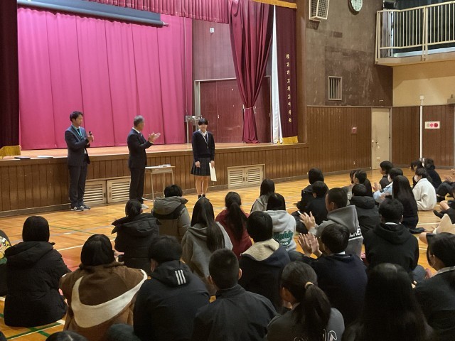 最後に生徒指導担当の教員から、残り50日弱となった3学期を充実したものにしてほしいとの話があり、始業式を終えました。