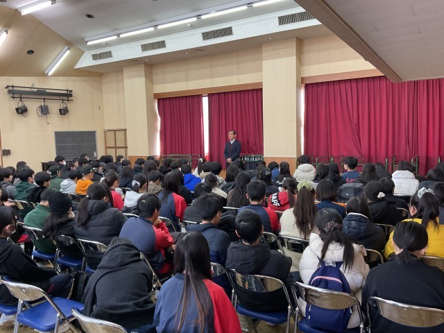 会館に到着して、すぐに代表生徒が講演いただく講師の方に挨拶をして、講演が始まりました。