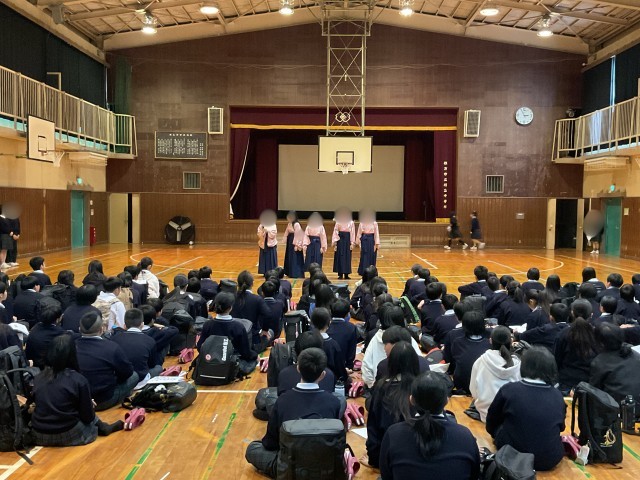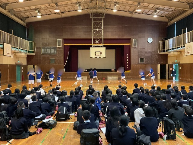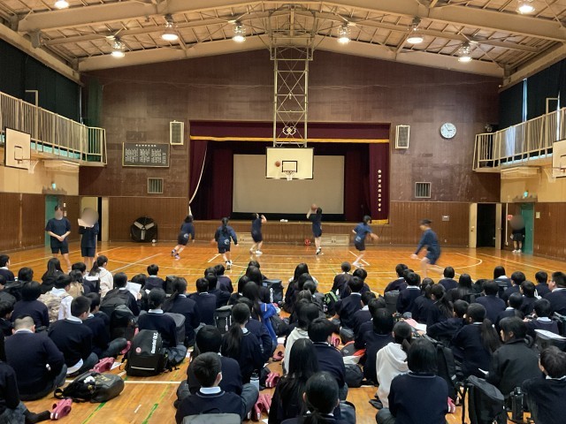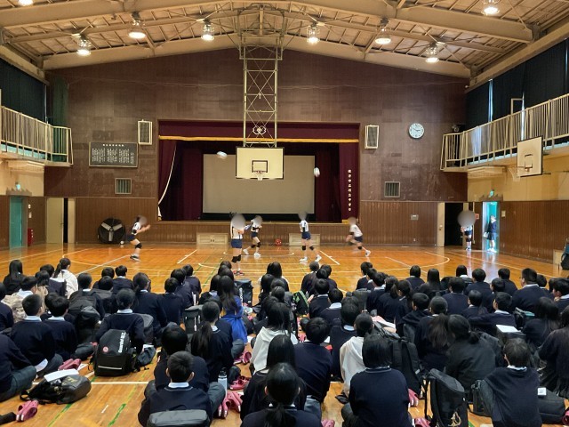 写真は、バドミントン部、バレーボール部、男子バスケットボール部、女子バスケットボール部、茶道部、美術部の様子です。