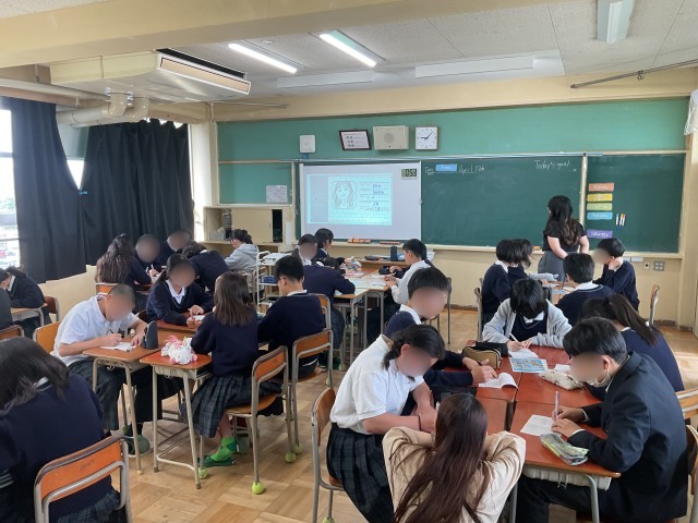 2年生の英語の授業です。NET(ネイティブ イングリッシュ ティーチャー)と授業者による授業です。