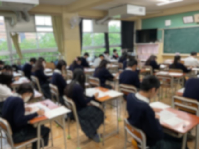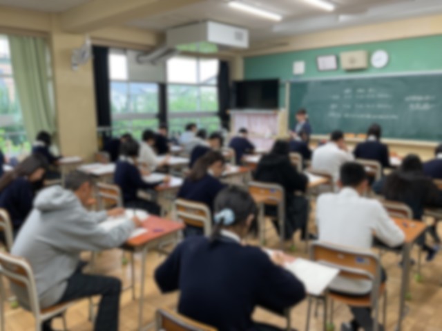 試験監督から、諸注意の後、生徒たちは始めの合図で「国語」の問題に向かっていました。