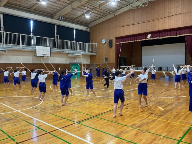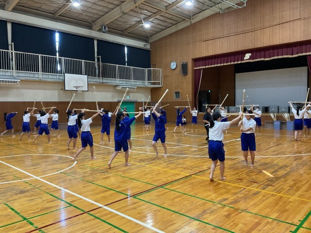剣道に取り組んでいます。大きな掛け声で、気合を入れて「めんっ!!」