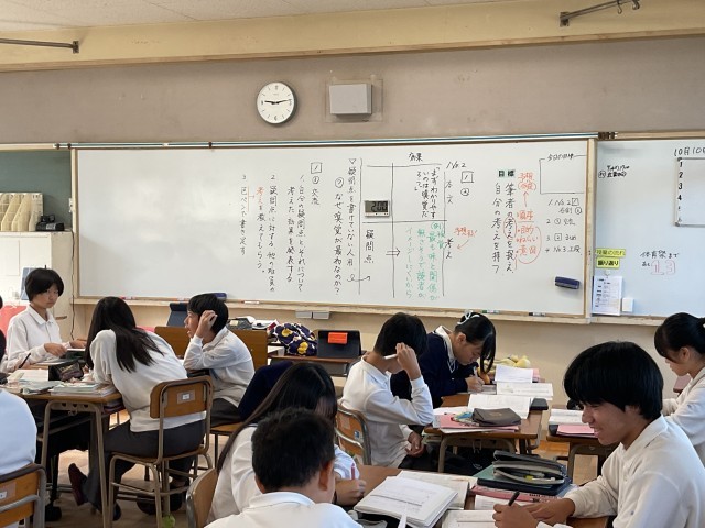 2年生 国語 公開日 2025/10/10 更新日 2025/10/10 学校の様子 「味は味覚だけでは決まらない」という教材で、筆者の考えを理解し、その上で自分の考えを持つことを学んでいました。 いいね(0)