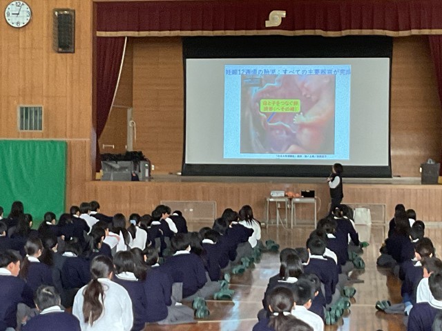 本日(11/20)1限目、助産師の原智以子先生にお越しいただき、1年生を対象に、ニ次成長や妊娠、出産についてのお話をしていただきました。