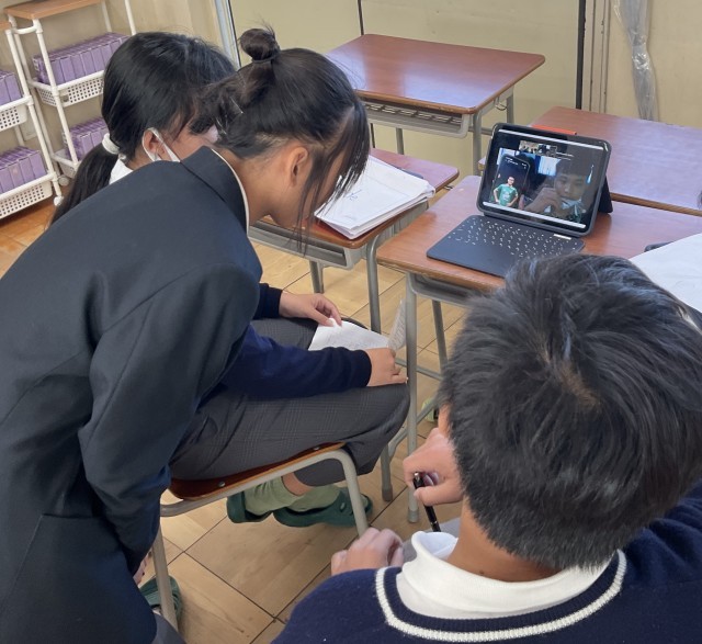 AIの活用による英語教育強化事業の一環として、本日(11/20)と明日(11/21)の1年生の英語の時間に、インドネシアやインドの生徒とオンライン交流会を実施します。自己紹介や自分の推しについて等の交流を行っていました。写真は本日3時間目、1年5組がインドネシアの生徒と交流している様子です。どのグループも積極的に交流を行っていました。