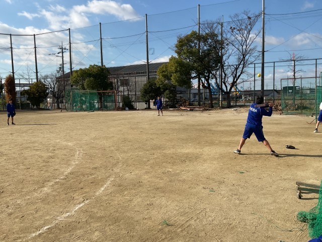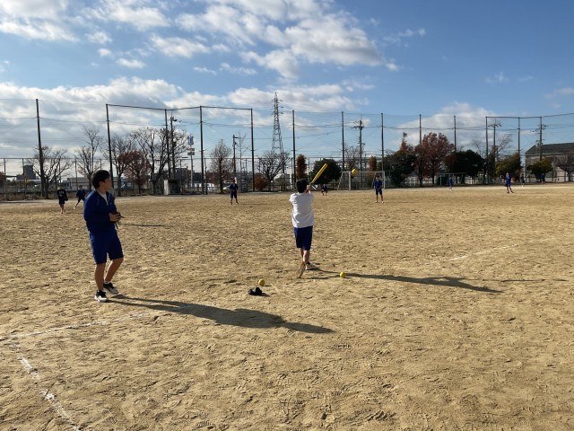 ソフトボールに取り組んでいます。写真はチームごとにキャプテンが中心となって考えた練習を行なっている様子です。