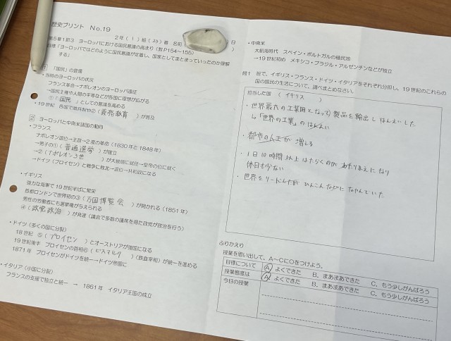 2年生 社会 公開日 2025/12/16 更新日 2025/12/16 学校の様子 ヨーロッパにおける国民意識の高まりについて学んでいました。イギリス、フランス、ドイツ、イタリアを班で分担して意見交流し、その後、全体で交流していました。 いいね(0)