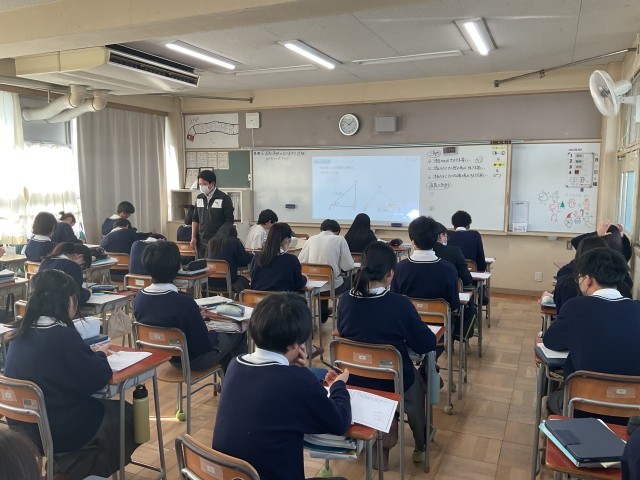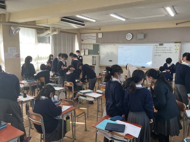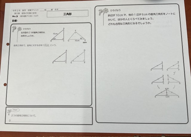 直角三角形の合同条件について、クラスメイトと交流しながら学んでいました。