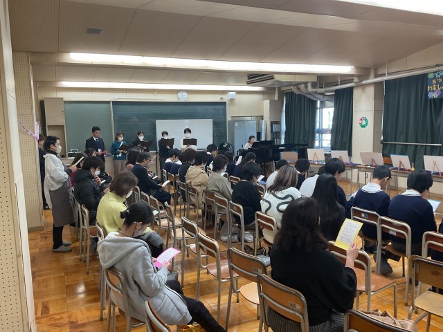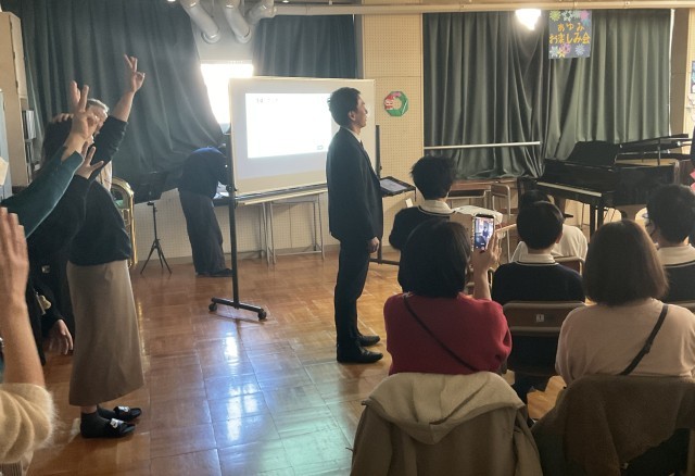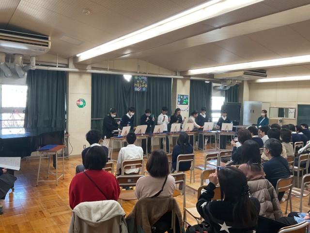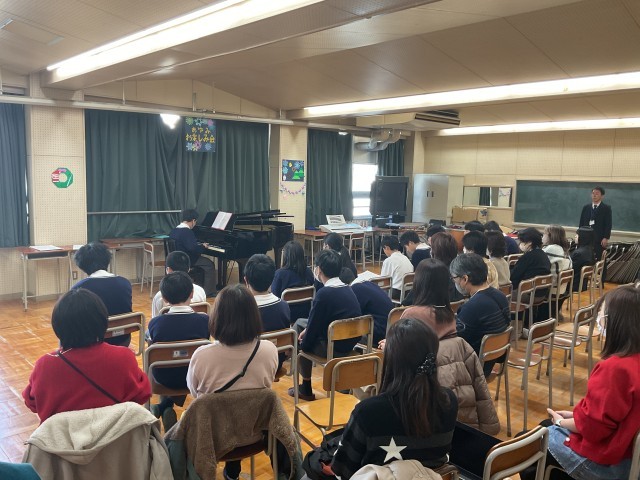 あゆみ学級のお楽しみ会を行いました。練習してきたピアノや、ハンドベルを保護者の前で披露したり、クイズ等を行いました。最後は、保護者や教員も含め全員で「この街が好き」を歌い、楽しい時間となりました。