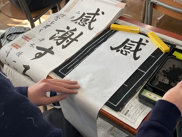 書写で「感謝する心」を書いていました。集中して取り組めていました。
