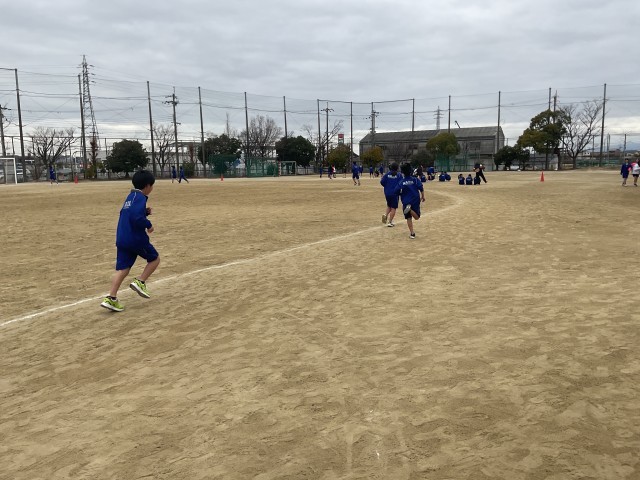 寒い中ですが、持久走を頑張っていました。グラウンドを7周、1400mを走りました。