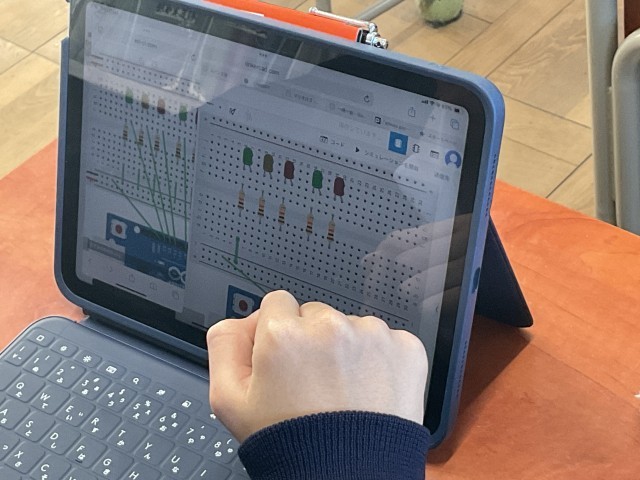 回路とプログラムを作り、実際に動かすことに挑戦していました。