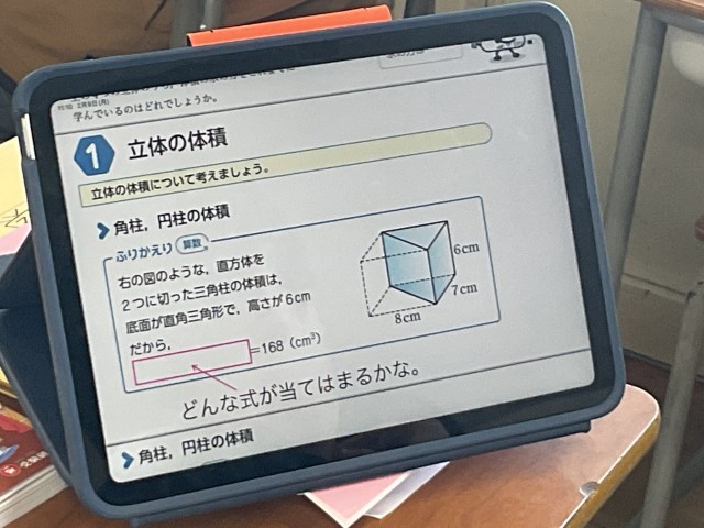 角柱や円柱の体積の求め方について学んでいました。