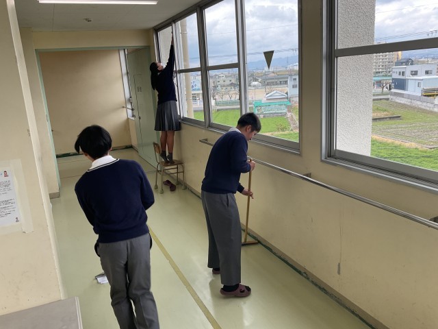 3月23日に1、2年生が大掃除を行いました。1年間お世話になった教室や廊下、靴箱など隅々まで綺麗にしました。