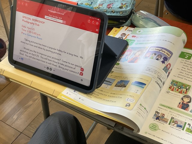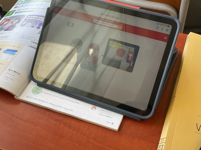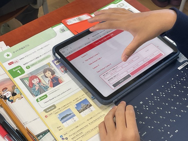教科書内のQRコードを読み取り、発音や問題等に挑戦していました。家庭学習でも自分の学びたい時に学べて、とても便利な機能です。