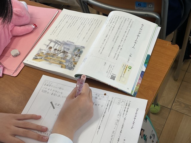 「セミロングホームルーム」という教材で登場人物についてまとめていました。