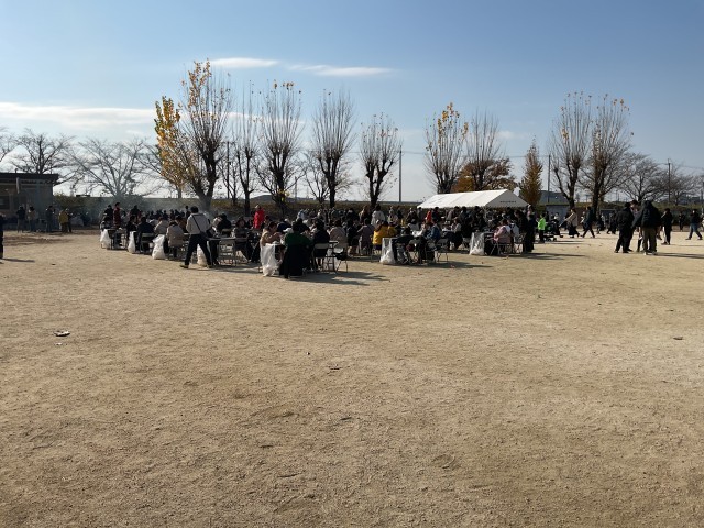 12月7日(日)船橋小学校において、校区レクレーションがありました。本校の生徒もたくさん来ており、つきたてのお餅や、芋煮などがふるまわれていました。