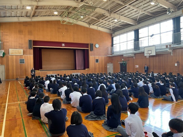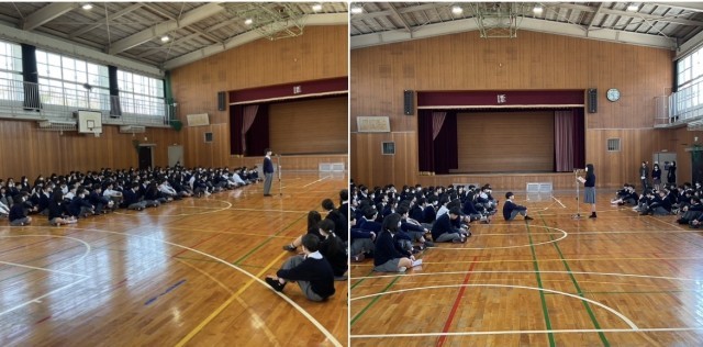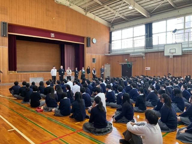 新しい学年のスタートに、生徒たちは少し緊張した面持ちの中にも、期待に満ちた表情を見せて、いい雰囲気でした。 その中で、校長先生からのお話、新転任の先生紹介そして対面式と続きました。