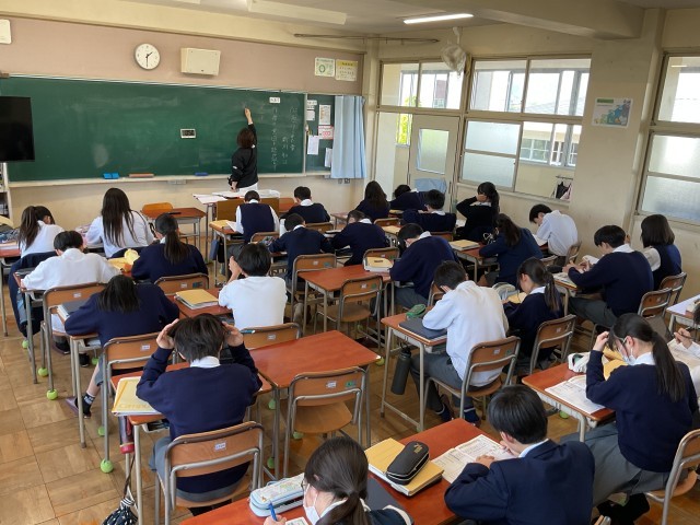 2年生の授業を参観しました。どの生徒も今日の学習内容の漢字に集中して取り組んでいました。