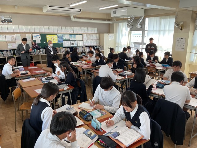 授業の取組姿勢や班学習に積極的に取り組んでいる西中生にお褒めの言葉をいただきました。