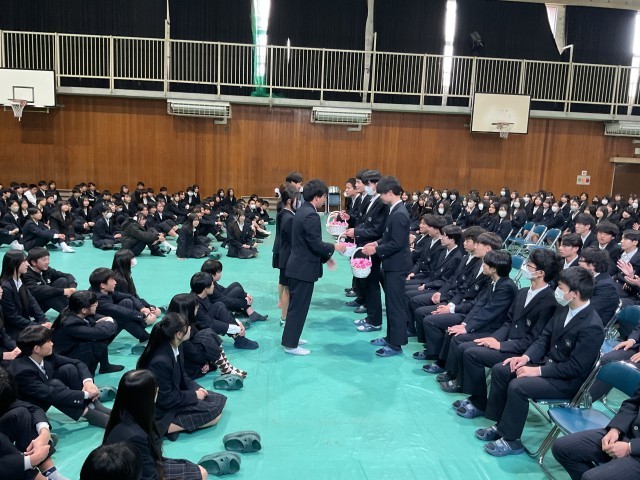 全校生徒が集まるのが最後になる3年生を送る会が行われました。