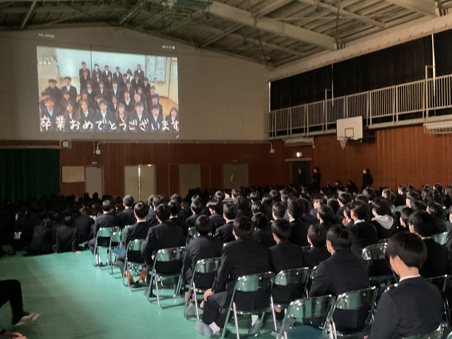 後輩たちによる感謝の挨拶、合唱、胸花贈呈、ビデオメッセージと心を込めて、3年生を送り出していました。