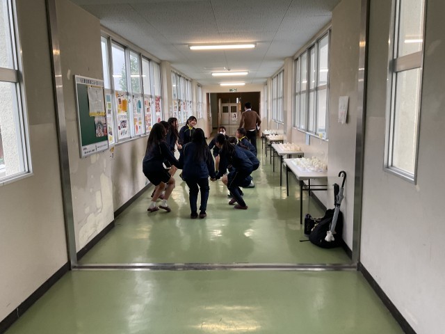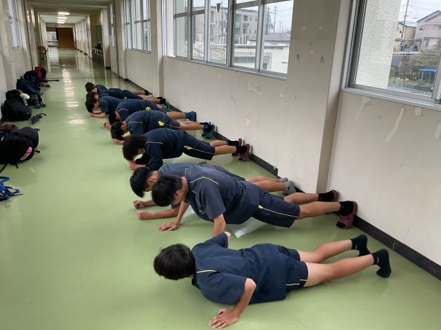 本日は雨です。屋外競技のクラブは校舎内で筋トレやミーティングです。
