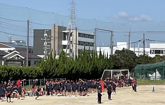 自分たちの行事は自分たちの手で。テント張り、準備物の用意、グランド整地、美化活動などなど予行に向けての準備を熱心に頑張ってくれました。階段美化を頑張った西中生と話をしていたら、1年生の1人が『階段きれいになってええわあ』ってひとこと呟いてくれました。その自然と出てきた言葉に2人で気持ちがほっこりしました。来週の火曜日の予行練習しっかり取り組んでいきましょう。