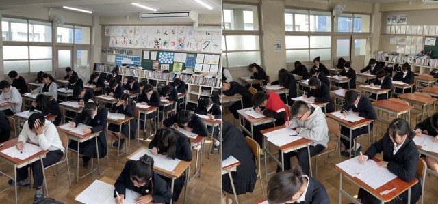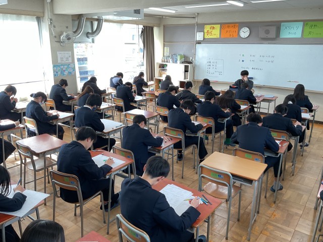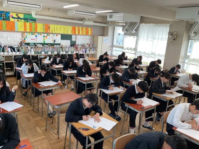 どのクラスも真剣に取り組んでいました。日々の授業で積み重ねた努力が、今回のテストにつながりますように。この頑張りを明日明後日に繋げていきましょう。