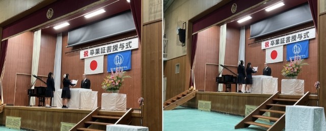 証書を受け取る姿、返事の声、思いのこもった答辞、そして合唱の響きと会場全体が優しさに包まれたすてきな卒業式となりました。