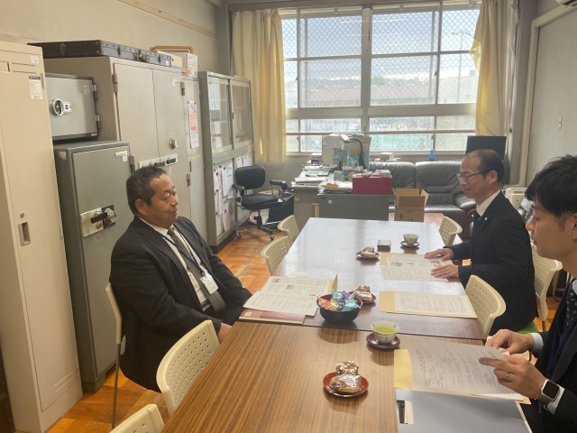 12月3日(水)、大阪府教育庁から本市の任期付校長のヒアリングに来られました。訪問を受けた長尾西中学校の簑田校長、長尾中学校の中間校長が、今年度の学校の様子や取組などについて、思いを込めて語られました。