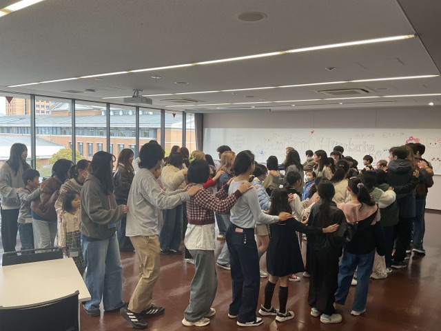 本事業は、留学生との交流を通して、英語を使ってお互いのことを理解し、異なる文化を体験することを目的とした取組です。当日は、市内の小学生・中学生あわせて約40名が参加し、関西外国語大学の留学生および外大生とともに、英語を使ったさまざまな活動に取り組みました。