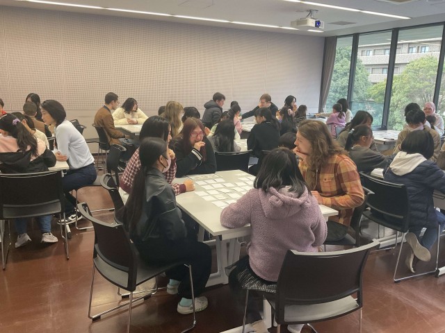 最初は緊張した様子も見られましたが、身近な話題やゲームを通して次第に会話が弾み、英語で自分の考えや気持ちを伝えようとする姿が多く見られました。普段学校で学んだ英語を活用し、留学生とリアルに会話をしながら「伝えるための手段」であることを実感できる、貴重な体験となりました。