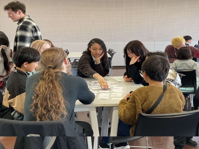 最初は緊張した様子も見られましたが、留学生と会話をしながら、課題解決に向けて協力しながら取り組む姿が見られました。普段学校で学んだ英語を活用し、留学生とリアルに会話をしながら「伝えるための手段」であることを実感できる、貴重な体験となりました。