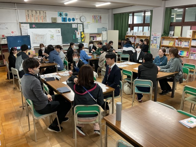 その後、1年生の生活、3年生の体育、5年生の算数の授業見学をしたり、現場教員との意見交換の時間を設けて実際の学校現場の話を直接聞いたりしました。その中で学生からは、